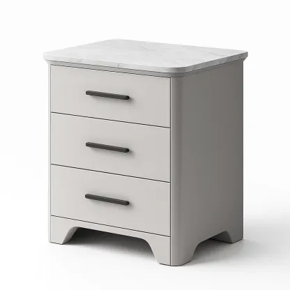 Comodino in MDF con tre cassetti e piano in marmo artificiale