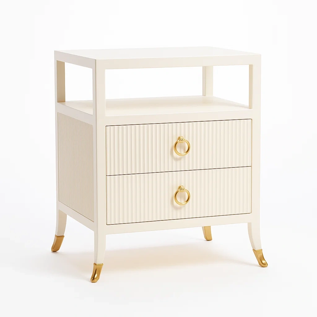 Comodino rettangolare in legno con due cassetti