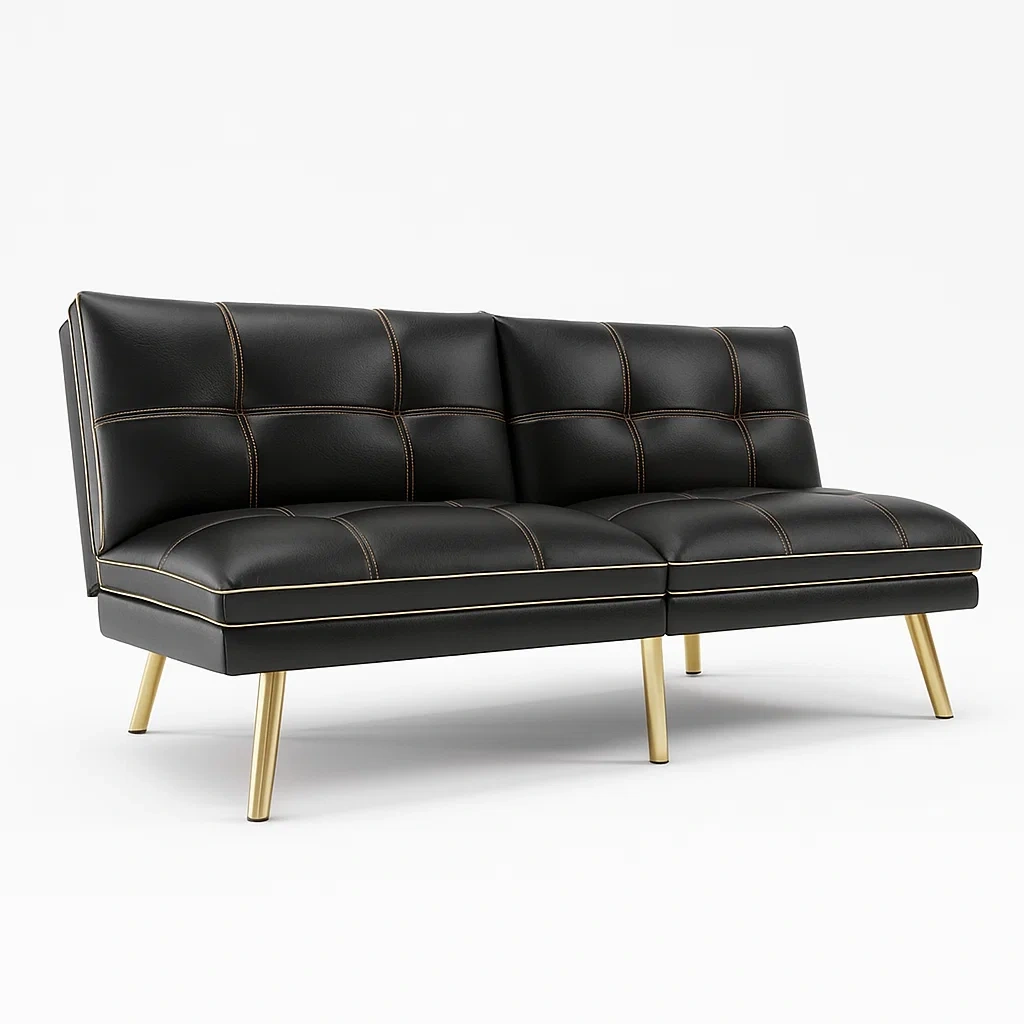 Divano a due posti letto in similpelle con gambe in metallo