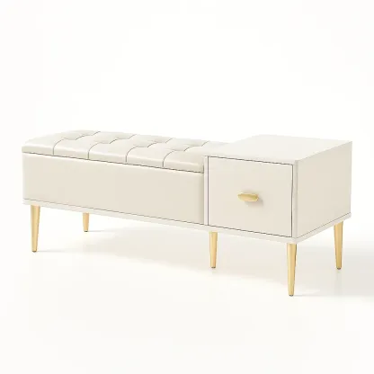 Panca contenitore in ecopelle con cassetto e gambe metalliche