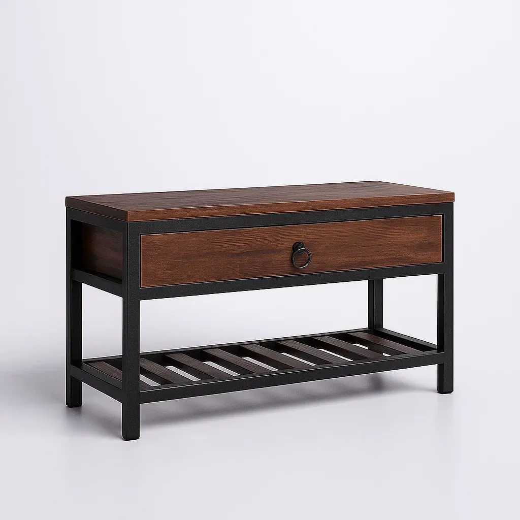Panca contenitore in MDF e acciaio con cassetto