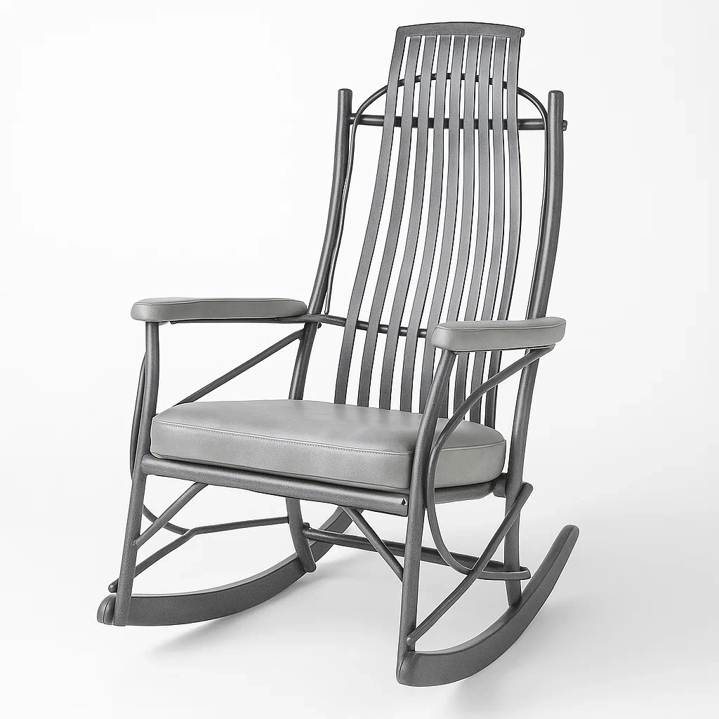 Sedia a dondolo in metallo con cuscino