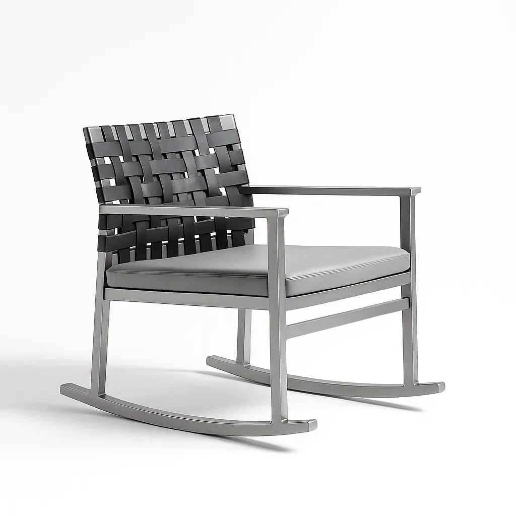 Sedia a dondolo in metallo con intreccio e seduta imbottita