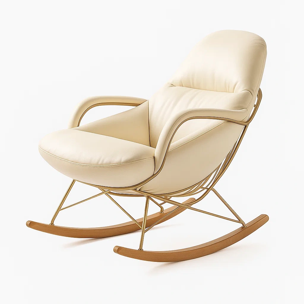 Sedia a dondolo in metallo e legno con rivestimento in PU