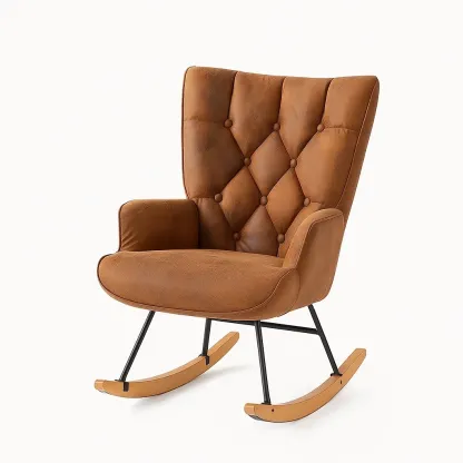 Sedia a dondolo in pelle scamosciata sintetica con struttura in metallo e legno